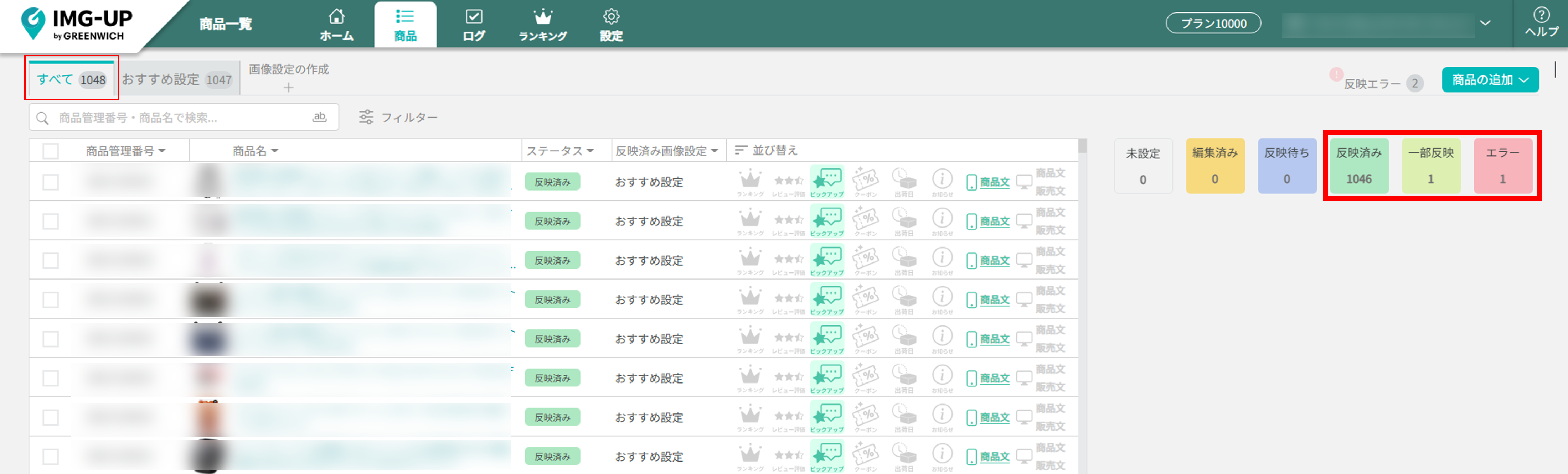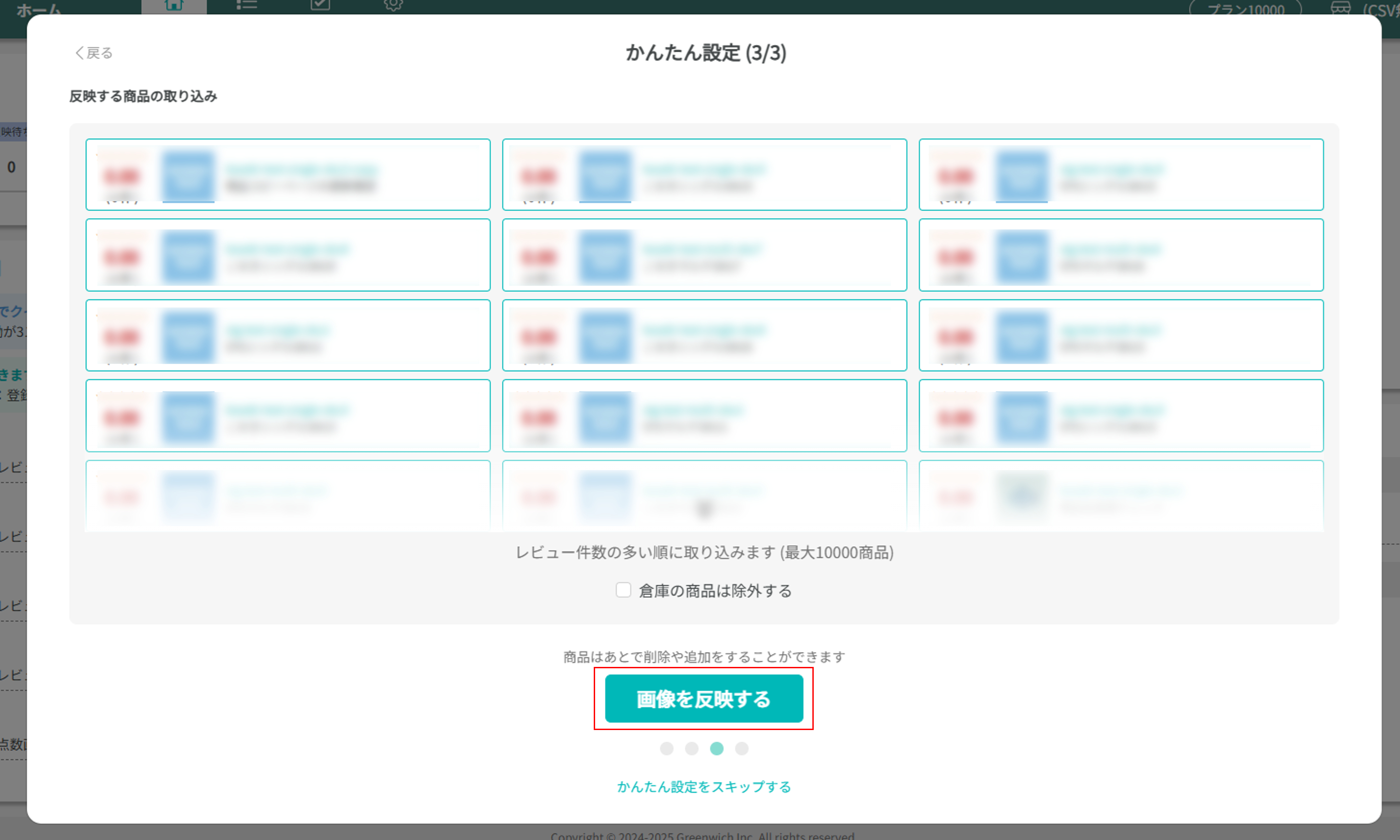 かんたん設定では最大10,000商品に対して、画像を反映する設定ができます。