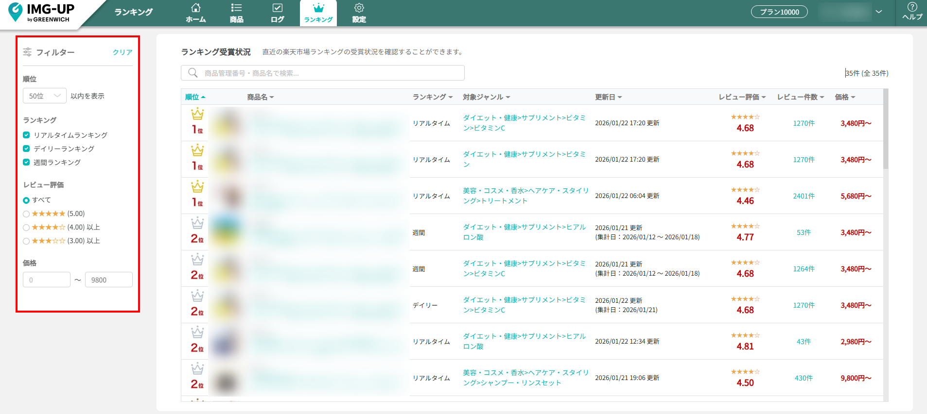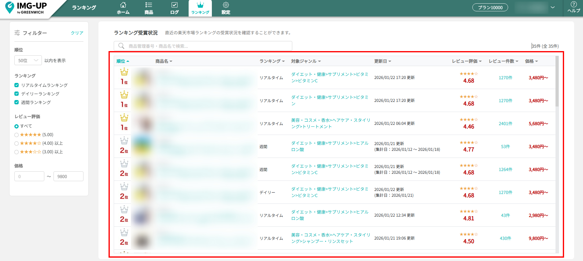 ランキング受賞をしている商品を一目で把握することが可能です。
