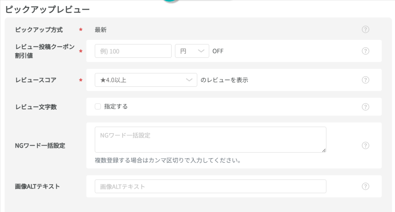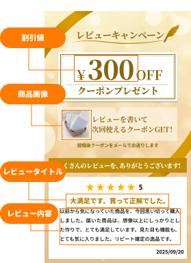レビュー投稿時に付与するクーポンの割引金額を設定します。