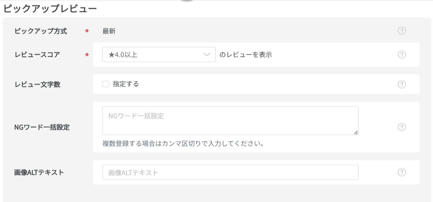 チェックを入れると、指定した文字数以上(40文字以上/80文字以上/120文字以上から選択)のレビューが表示されます。