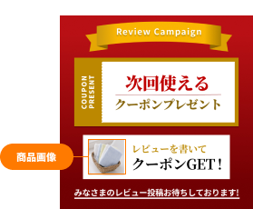 「レビュー投稿クーポン」画像は、レビュー投稿を促す訴求を1枚の画像に表示できるテンプレートです。