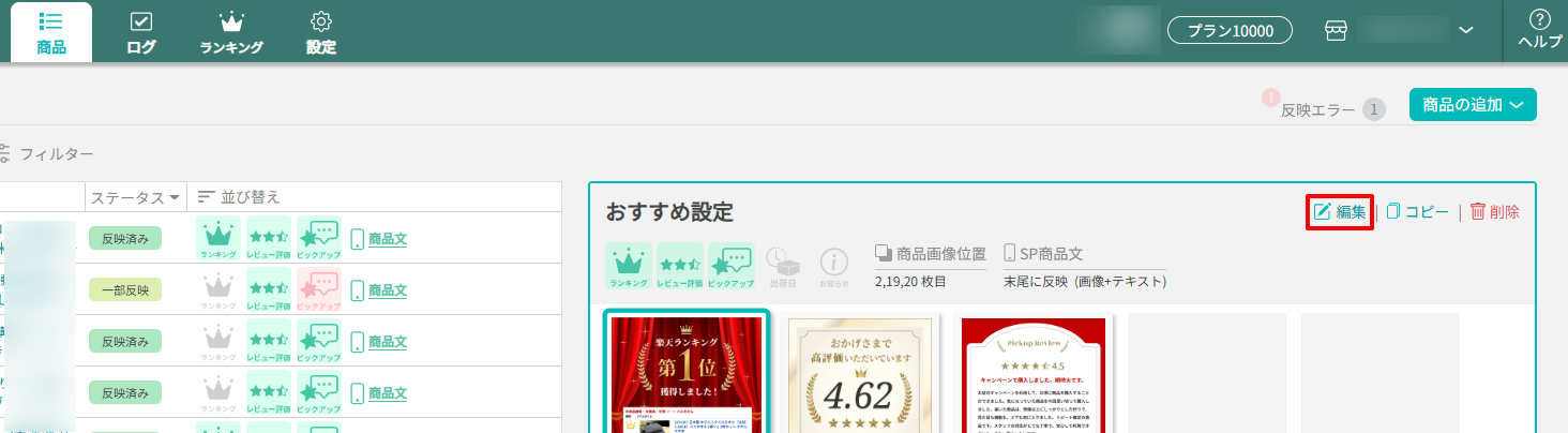 編集を保存ボタンクリック後、すでに反映済みの商品は、